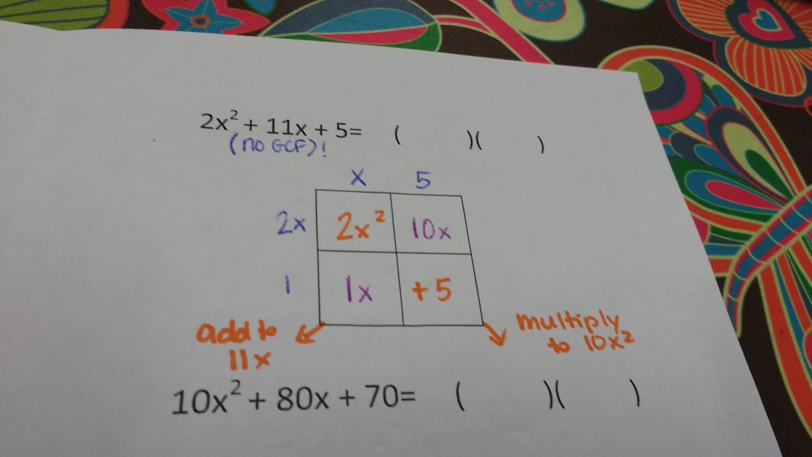 The middle 0x term tells me that my 2 missing boxes add together to 0x. At first, students ALWAYS yell back this is impossible.